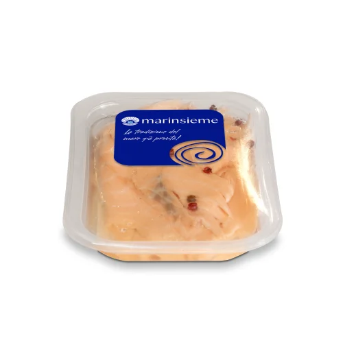 Sottili fette di salmone dal sapore raffinato, arricchite da un delicato tocco di pepe rosa. Un incontro elegante di gusto e freschezza, perfetto per un antipasto leggero o un piatto dal carattere gourmet.