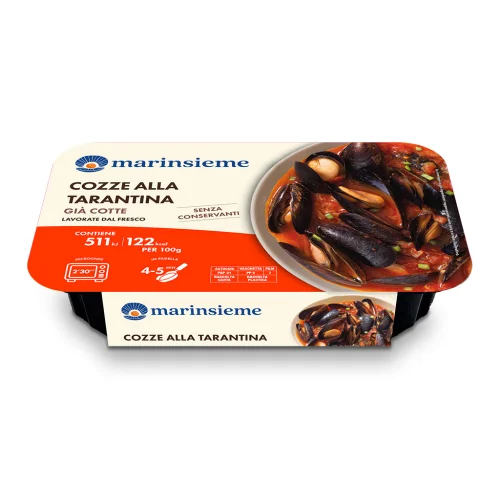 Un grande classico del Sud Italia, pronto da servire. Le nostre cozze alla tarantina uniscono la freschezza del mare a un sugo ricco e aromatico, a base di pomodoro, aglio e prezzemolo. Un prodotto pratico, gustoso e ideale per ristoranti, gastronomie e banchi pronti da servire. Basta scaldarle… e il profumo fa il resto.